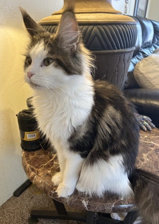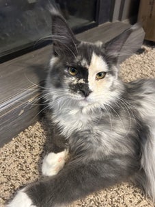 She is a black smoke tortie with white and is considered joker face.
