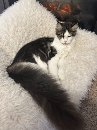She Is a Polydactyl (lots of toes-7 on each front paw and 6 on each back paw) Black Smoke with White