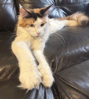 She Is a Polydactyl (lots of toes-7 on each front paw and 6 on each back paw) Calico
