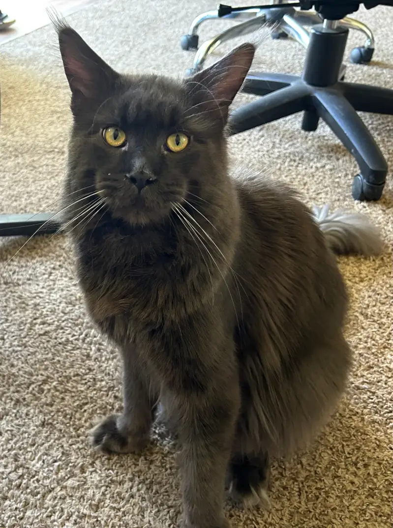 He is a beautiful solid grey king. He is not a polydactyl but his father was one.