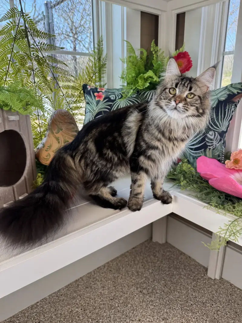 She is a black classic tabby with standard paws.